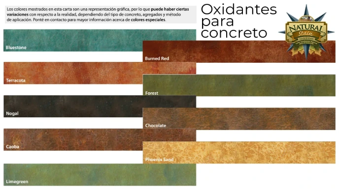 Natural Stain® es un sistema avanzado de coloración para concreto que utiliza reacciones químicas para transformar la apariencia de superficies horizontales y verticales, sin alterar sus propiedades físicas. Resalta las características naturales del concreto, ideal para pisos, paredes, columnas, muebles y cubiertas de cocina y baño. Este producto permite simular acabados de piedra como mármol o granito y ofrece opciones artísticas con formas geométricas, letras y números.